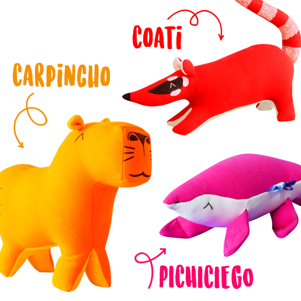 INCLUYE: 1 Carpincho, 1 Coatí y 1 Pichiciego.